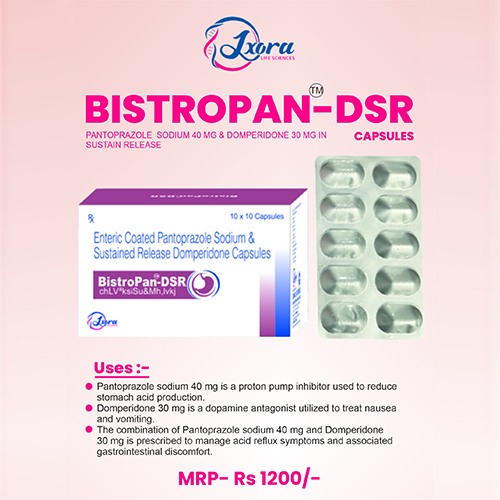 HomeCapsulesBISTROPAN -DSR CAP BISTROPAN -DSR CAP PANTOPRAZOLE SODIUM 40 MG & DOMPERIDONE 30 MG IN SUSTAIN RELEASE CAP (ALU-ALU) Request to CallShare SKU: 2b2486240045 Category: Capsules Product ID: 22926 Related products LXEETRA -200 CAP Rated 0 out of 5Read more DOXYTRY-LB CAP Rated 0 out of 5Read more LXOPIRO CAP Rated 0 out of 5Read more